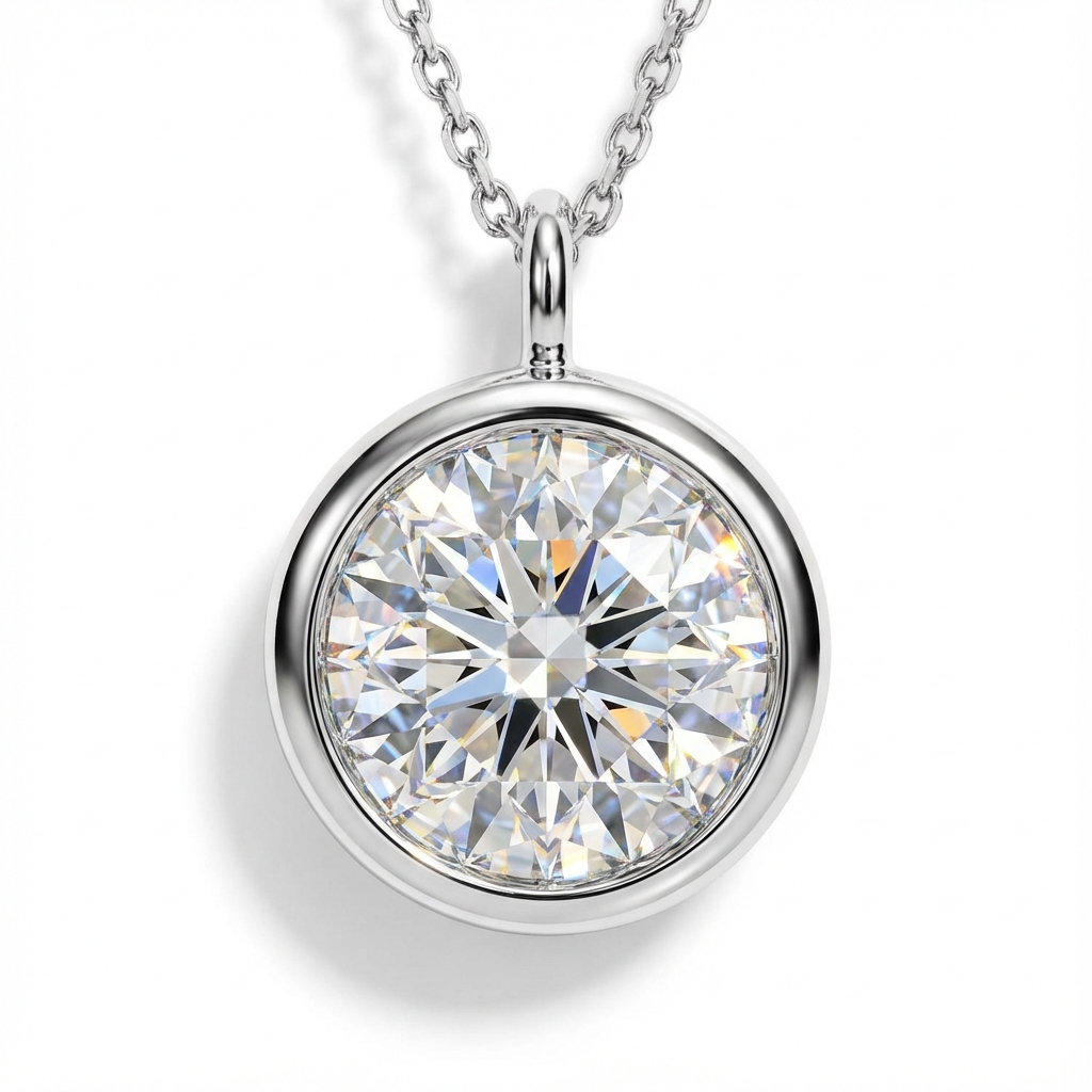 Exquisite diamond pendant with brilliant cut stone in a classic setting.